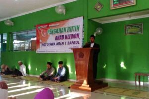 Bantul (MTsN 1 Bantul) — Salah satu agenda Pertemuan Orang Tua (POT) MTsN 1 Bantul adalah menjadi penanggung jawab dan penyelenggara pengajian rutin Ahad Kliwon yang sudah rutin mulai dilaksanakan sekitar delapan tahun yang lalu. Agenda ini menjadi salah satu wadah komunikasi antara orang tua dan madrasah. Pengajian rutin mulai